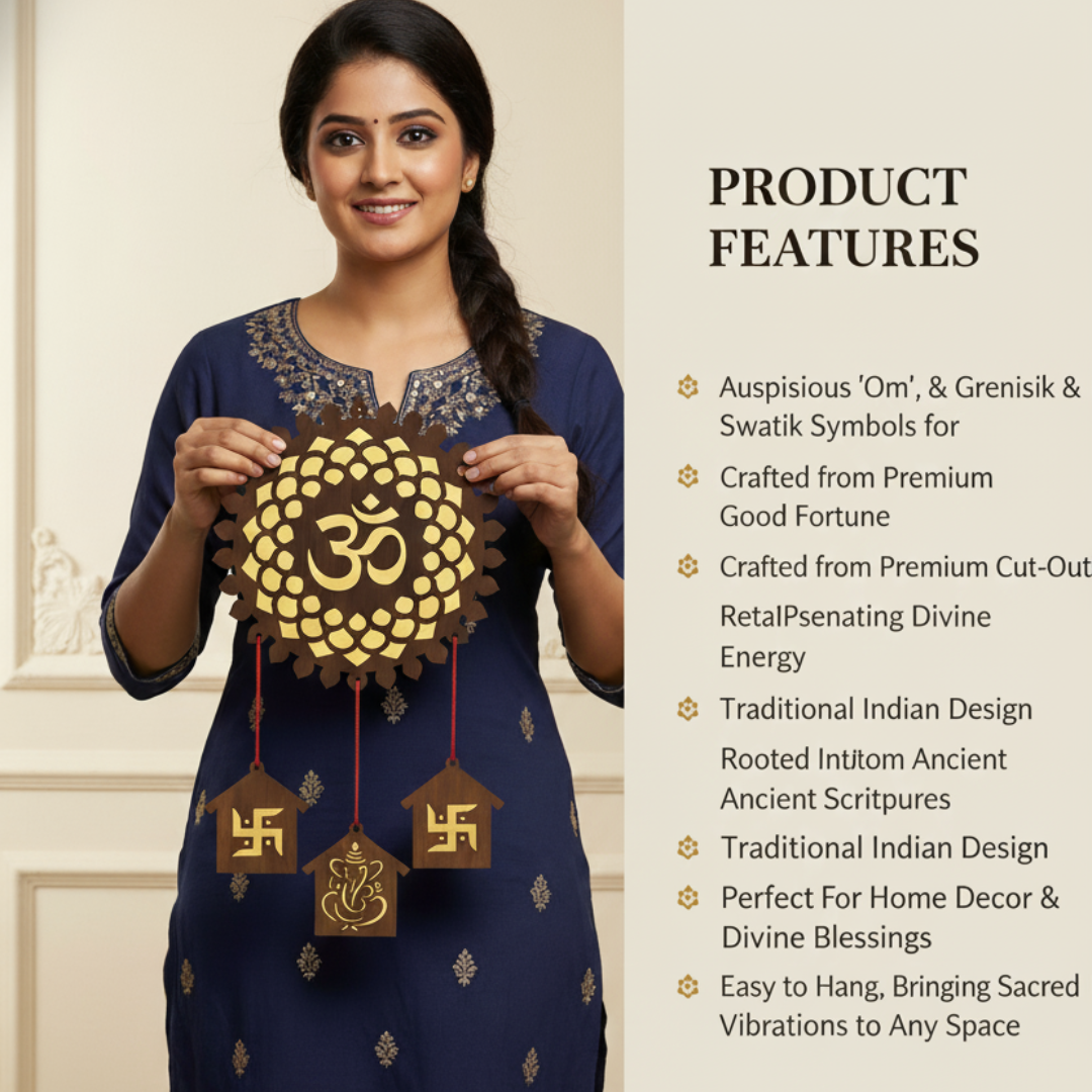 Bring peace, positivity, and divine energy into your home with this exquisitely crafted Wooden Om Wall Hanging. Designed with precision and devotion, this wall hanging beautifully combines three sacred Hindu symbols — Om (ॐ), Swastik, and Lord Ganesh — to invite prosperity, protection, and harmony to your space.
